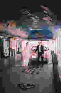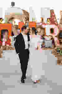They kept things very non-traditional however, knew they wanted to exchange their own vows. "It was fun writing them separately and being able to see the others expressions as we recited them. My parents also convinced us to have Elvis sing during the ceremony, which I'm glad they did. It was cheeseball and weird and funny - and perfect!"