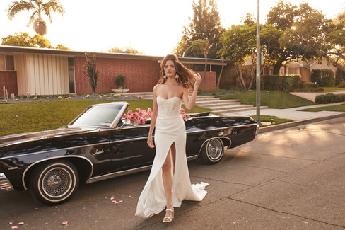 Featuring Tara Lauren's signature elevated romantic aesthetic with a playful retro chic outlook, including sleek crepe silhouettes, structured fit, playful bow veils, statement silk pantsuits, chic bishop sleeves, and feminine floral texture. This collection echoes retro west coast and California cool nostalgia, always on beat in Replica West.