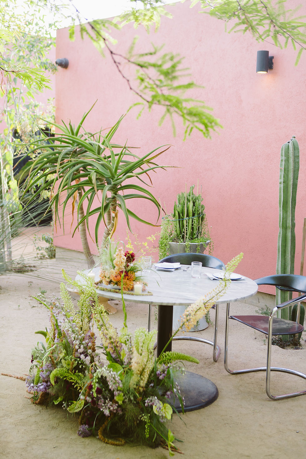 We initially were going to get married at the Capri Hotel in Ojai but we lost our house in the Eaton fire and had to change the date and scale of our wedding at the last minute. We chose Loreto because we love the restaurant and wanted to do something that was food-centered and local. We had wanted to have the ceremony and reception outside, so the fact that they have a beautiful courtyard ultimately sold us. They were also great to work with on our new timeline and we were able to find another date that worked for most of our vendors. Our planner Sabrina at Moon Realm really made it all happen with the change of plans — I’m not sure we would have done anything if it weren’t for her willingness to pivot.
