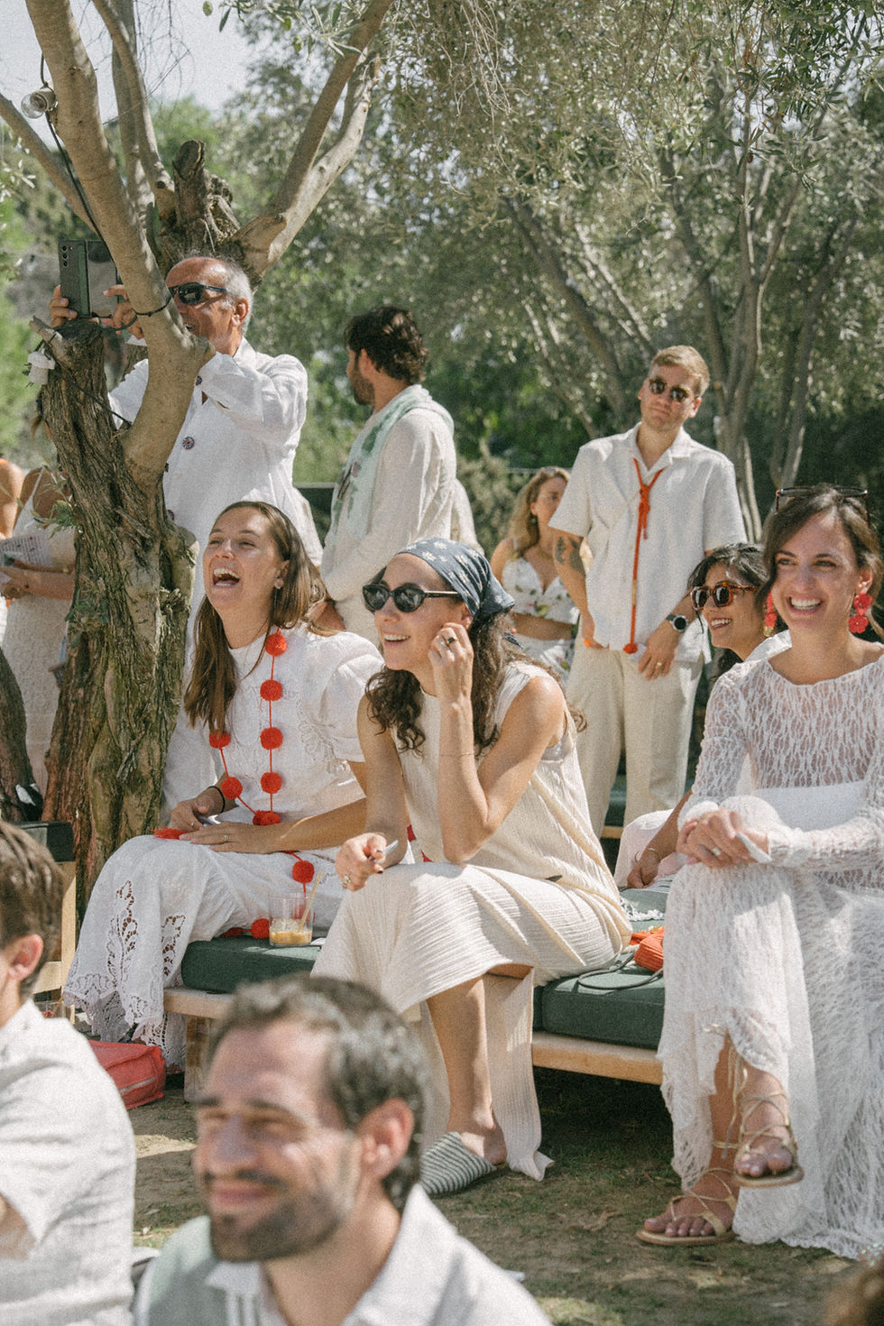 The Ceremony: Two close friends led an interactive ceremony where guests connected with one another while hearing stories about us through four themes that define our relationship—home, creativity, growth, and community—each shared by a different friend. As part of the ceremony, every guest received a folded Victorian love letter, wrote a note inside it, and hung it on a massive olive tree. We did the same, exchanging our own letters instead of rings, and adding them to the wishing tree.